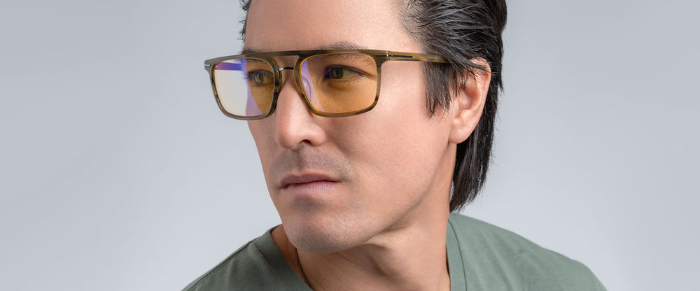 Inspired by California's tech hubs and part of our Trace Collection, the Barton is a modern rectangular frame that blends subtle retro flair with cutting-edge eye protection. Expertly crafted from premium acetate, it features a saddle bridge and a minimalist metal inlay that seamlessly connects the front to the temples, enhancing its timeless design. Available in two distinctive colorways, the style offers Amber and Clear lens tints, delivering optimal protection against digital eye strain and blue light exposure.