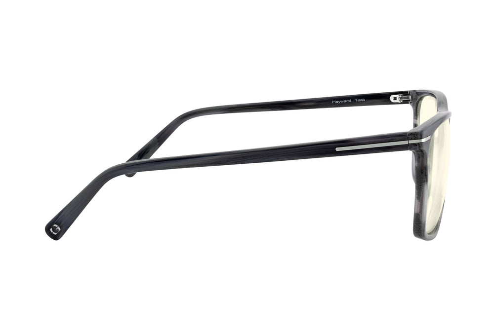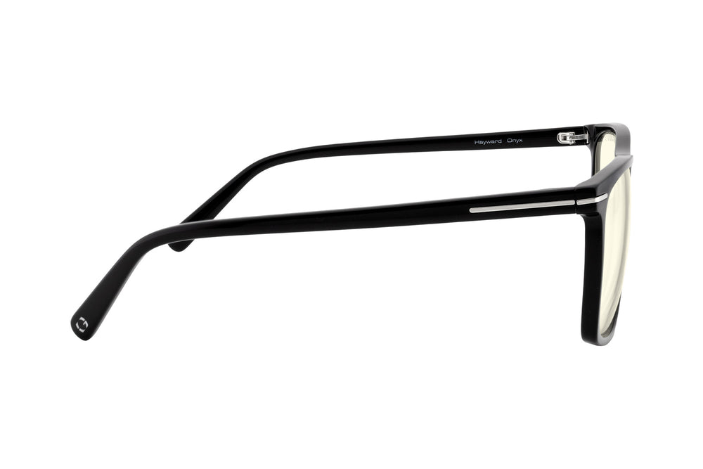 Inspired by California's tech hubs and part of our Trace Collection, the Hayward is a modern rectangular frame that blends subtle retro flair with cutting-edge eye protection. Expertly crafted from premium acetate, it features a saddle bridge and a minimalist metal inlay that seamlessly connects the front to the temples, enhancing its timeless design. Available in two distinctive colorways, the style offers Amber and Clear lens tints, delivering optimal  protection against digital eye strain and blue light exposure.