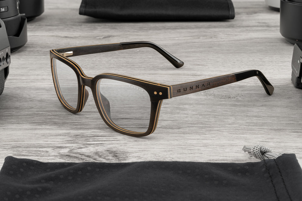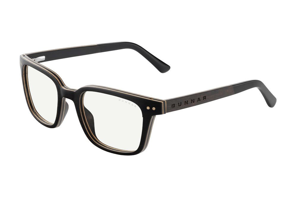 Discover the beauty of nature with Muir, a key style in our innovative ARBOR Collection. Inspired by the primeval forest, Muir Woods, these glasses combine elegance and essence. Featuring genuine ebony wood reinforced with an internal carbon fiber layer, this frame delivers firmness, tensile and compressive strength in a lightweight, ultra-durable configuration. Flexible spring hinges add comfort for long wearing fit. Advanced lens technology provides the best viewing experience available in GUNNAR’s line of premium blue blocking eyewear.